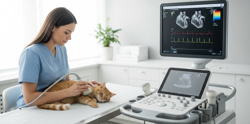 • Ecocardiograma: ultrassom do coração com Doppler para avaliar músculos, válvulas, fluxo sanguíneo e força de bombeamento.